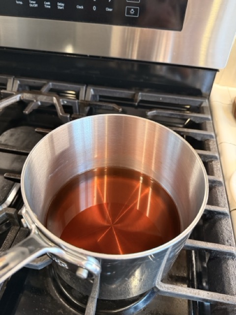 • Pour sugar, coconut water, and fish sauce in a small sauce pan